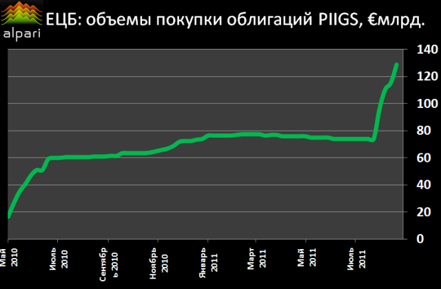 Еврозона продолжает оставаться основным очагом нестабильности, экономические отчеты здесь пока не так ужасны. Розничные продажи в июле выросли на 0.2%, ВВП вырос во втором квартале тоже 0.2%, годовой прирост составил скромные 1.6%. Заказы в немецкой промышленности за июль сократились на 2.8%,а производство выросло на 4.0%. ЕЦБ, на фоне разворачивания долгового кризиса, оставил ставки неизменными и не дал никаких сигналов на дальнейшее ужесточение. Оценки экономики понижены, что сигнализирует о возможности перехода к более мягкой монетарной политике. Одновременно Центробанк снова расширил объемы скупки итальянских гособлигаций до €13.3 млрд. за неделю, но это не смогло исправить ситуацию и доходность итальянских облигаций снова растет, достигнув 5.4% годовых.
