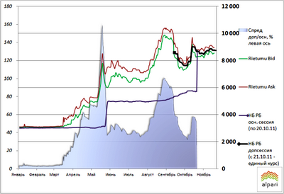 20 октября, в результате первых торгов на единой сессии, курс доллара составил 8 680 рублей. Сложившиеся в результате торгов курсы являются официальными курсами Нацбанка.